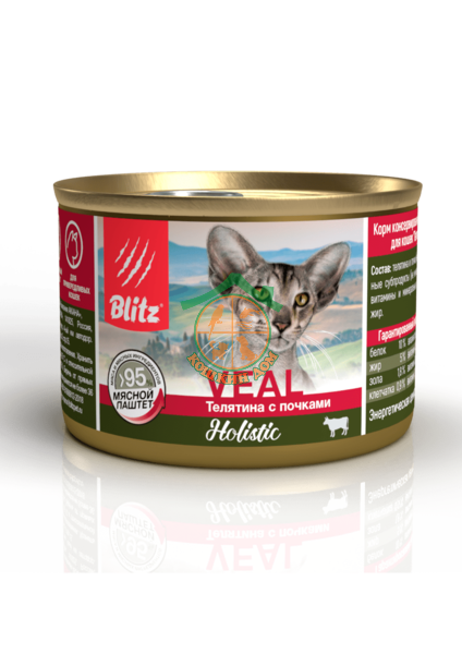 → Блиц Holistic влажный корм 200г для стерилизованных кошек паштет Телятина Почки (1907)