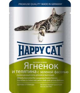 Нежные кусочки в желе Happy Cat обеспечивает правильное, разнообразное питание кошки.