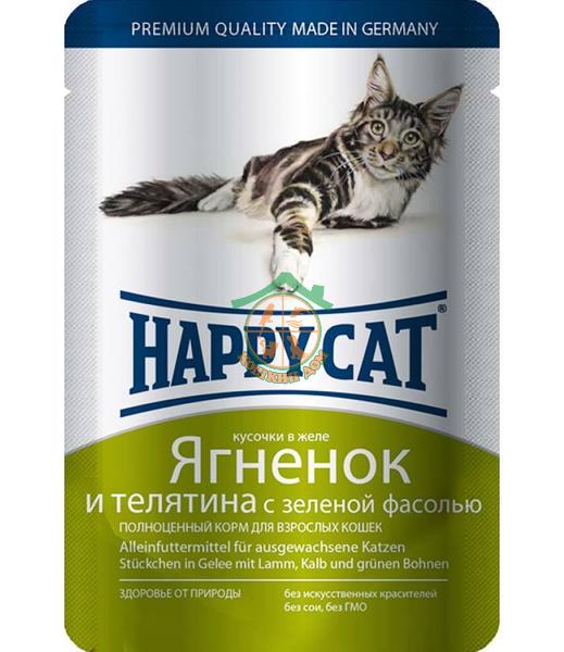 Happy Cat хэппи кэт с ягненком, теленком и зеленой фасолью в желе 100 г