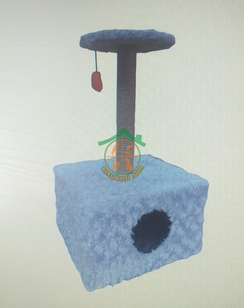 Уютный домик с когтеточкой, полочкой и игрушкой для кошек. Домик квадратной формы и круглая полочка оббиты искусственным мехом серого цвета с рисунком "след кошачьей лапы", который идеально вписывается практически в любой интерьер. Когтеточка-столбик изготовлена с использованием джутовой веревки. Для приучения кошки и привлечения ее внимания к когтеточке на полочке закреплена игрушка. Конструкция легко собирается, надежна в эксплуатации. Вес 10,5 кг.