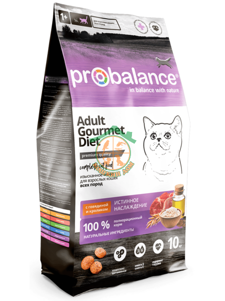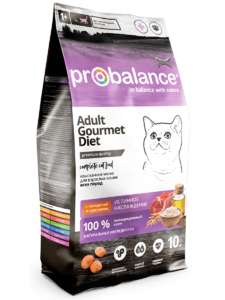 Как известно, многие кошки избирательны в еде и часто отвергают предложенную пищу. Рецепторы кошек чутко воспринимают различный вкус мяса. Датские ветеринары выяснили, что это не единственная причина привередливости кошек. Еще имеет значение баланс питательных веществ. На основе научных исследований создан корм Probalance "Gourmet Diet Beef & Rabbit" (Пробаланс "Гурме Дайет Эдалт Биф энд Раббит"). Он состоит из 100% натуральных ингредиентов, основа корма – два вида мяса (говядина и кролик). В корме нет курицы, поэтому рацион подойдет кошкам с аллергией на этот вид мяса.