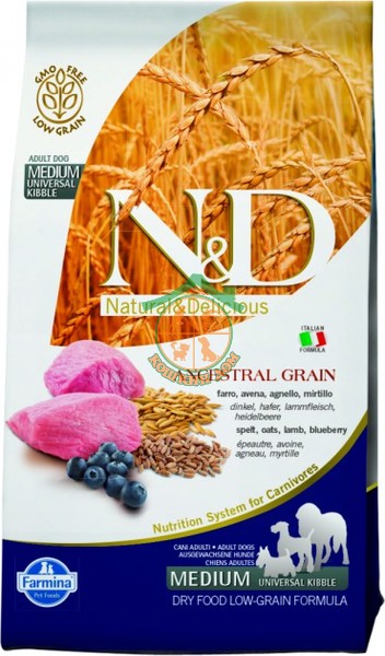 Корм N&D Dog корм Ягненок-Черника(Lamb & Blueberry) Adult Medium&Maxi 12 кг низкозерновой (2858)