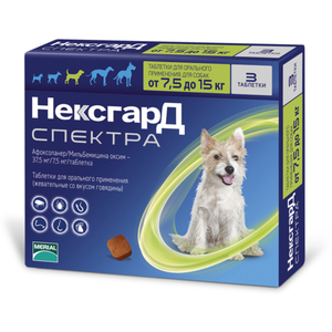→ НексгарД Спектра М для собак 7,5-15 кг, таблетки от блох, клещей, глист, со вкусом говядины 3 шт