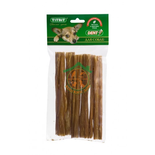 Высушенные говяжьи кишки. Упаковка содержит 12-16 штук длиной 19 см. Легкоусвояемое лакомство, богатое витаминами и ферментами микрофлоры кишечника крупного рогатого скота. Имеют большую энергетическую ценность из-за повышенного содержания жира. Богаты переваримыми протеинами, которые содержат все незаменимые аминокислоты и потому усваиваются на 90-95%. Содержат минеральные вещества в большем количестве, чем все остальные продукты (в том числе кальций, магний и фосфор), жирорастворимые витамины, а также водорастворимые витамины. Очищает зубы у мелких пород собак, продукт полезен для стимуляции пищеварения.