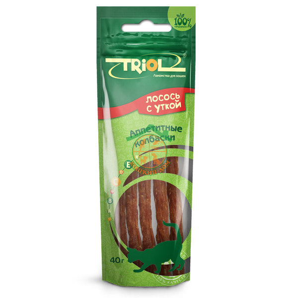 Триол (TRIOL) аппетитные колбаски из лосося с уткой для кошек, 40 гр.