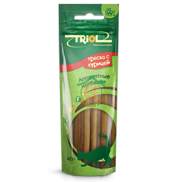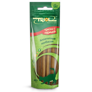 Триол лакомство аппетитные колбаски из трески с курицей для кошек.