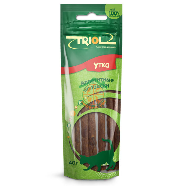 Триол (TRIOL) аппетитные колбаски из утки для кошек, 40 гр.