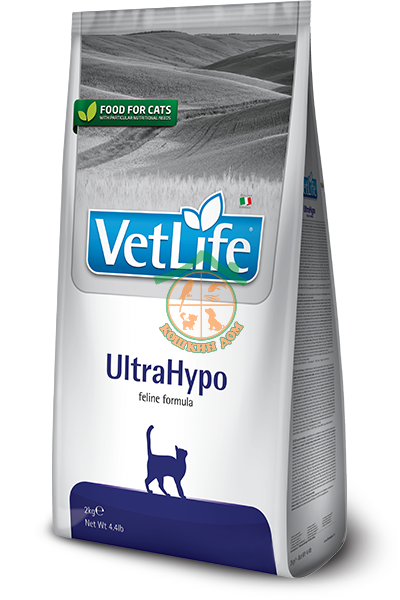 Farmina Vet Life UltraHypo диетическое питание для кошек при неблагоприятной реакции на пищу (пищевая аллергия и/или пищевая непереносимость). Может быть использована в качестве диагностического теста (исключающая диета). Рекомендована в качестве диетотерапии при хронических воспалительных заболеваниях кишечника (IBD), рецидивирующей рвоте.