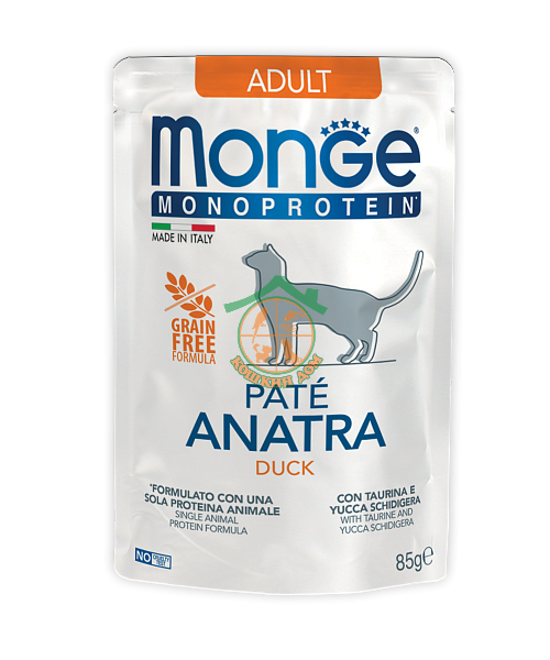 → Влажный корм MONGE CAT 85г паучи для кошек Монопротеиновый Паштет с Уткой (3703)